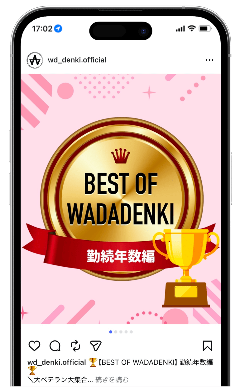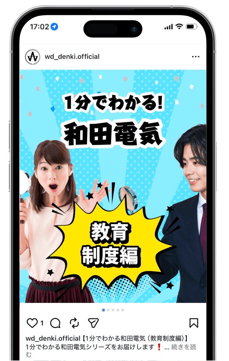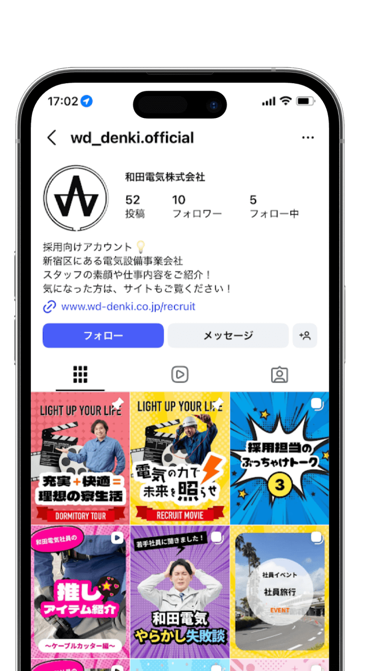 求職者に和田電気で働くイメージを持ってもらうとともに、社員の雰囲気を感じてもらうことを目的とし、コンセプト設計や各種投稿デザイン・投稿文作成、投稿スケジュールの管理を行っています。「サイトやInstagramを見た」と面接に来た方から声を聞くことが増え、会社とマッチした人材の獲得確率が高まっています。