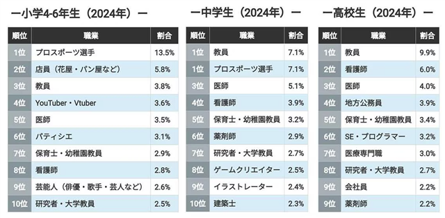 中高生がなりたい職業