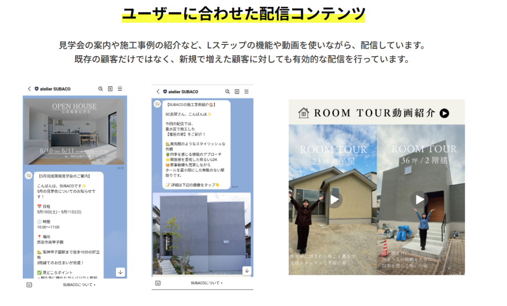 その他、機能の詳細はこちら👇 https://www.sofcom.co.jp/lstep/ <実際の事例をご紹介> Lステップの導入により集客の強化、業務の効率化に成功した工務店様の事例をご紹介!