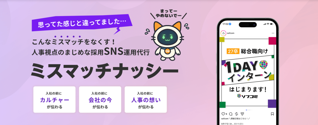 【サービス紹介】ミスマッチをなくす、人事視点のまじめな採用SNS運用代行「ミスマッチナッシー」